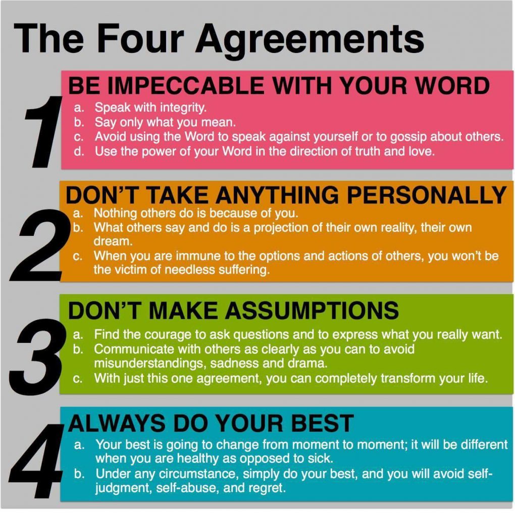 “Everything we do is based on agreements we have made – agreements with ourselves, with other people, with God, with life. But the most important agreements are the ones we make with ourselves.” – Don Miguel Ruiz